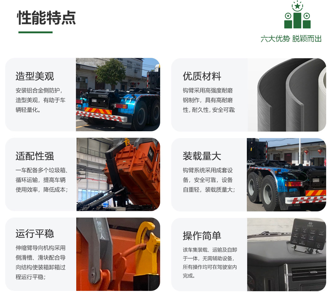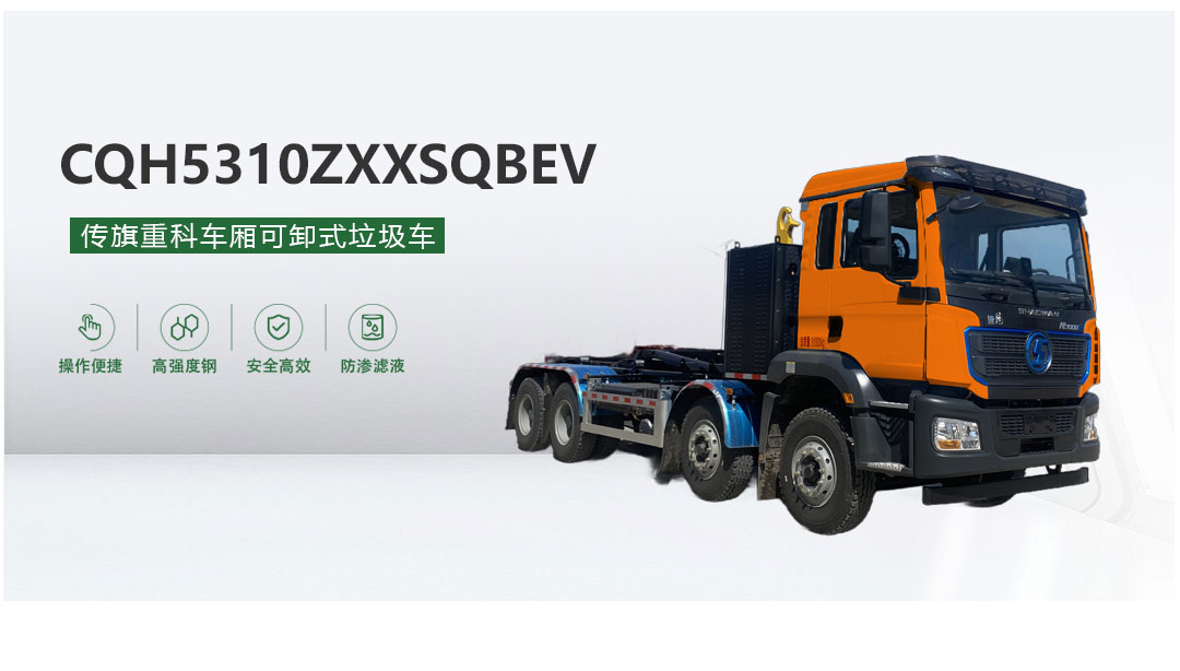 “传旗重科牌” CQH5310ZXXSQBEV纯电动车厢可卸式垃圾车及配套的垃圾压缩站是我公司自主研发的一种新型垃圾转运车辆,具有垃圾收集、垃圾压缩、垃圾转运、垃圾卸料等多种功能,适用于城镇袋装或散装垃圾的收集及转运,一车多用,满足垃圾转运的不同需求。