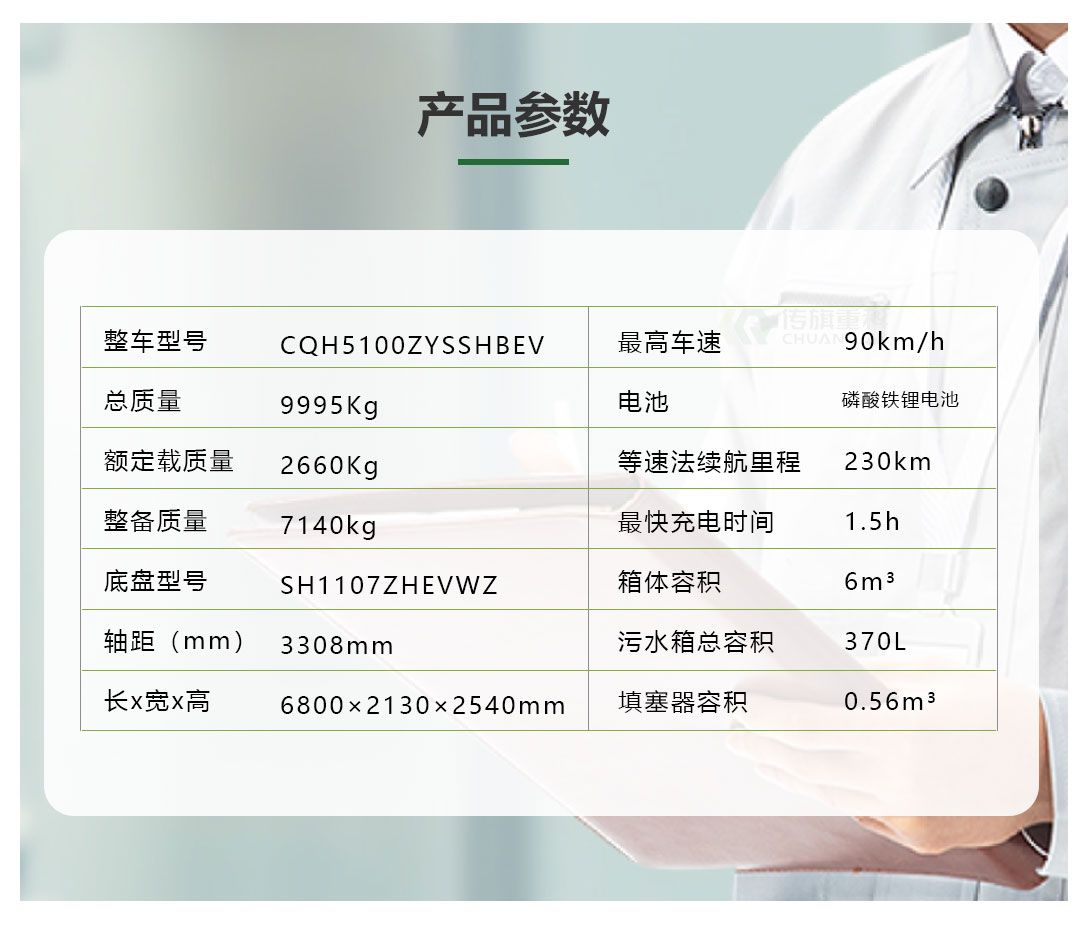 纯电动压缩式垃圾车是我司积极响应国家环保政策,为满足市场节能降耗需求,自主研发的新一代生活垃圾收集及转运的专用车辆。该设备是在上汽大通汽车有限公司跃进牌专用底盘上加装密闭式垃圾箱、填装器、压缩机构、上料机构、卸料机构、液压系统、电气系统等组成。主要用于城乡垃圾的流动或集中收集,在收集的同时对垃圾进行压缩、排出垃圾中的污水,并进行压缩垃圾的转运,运输到位后的垃圾推卸。