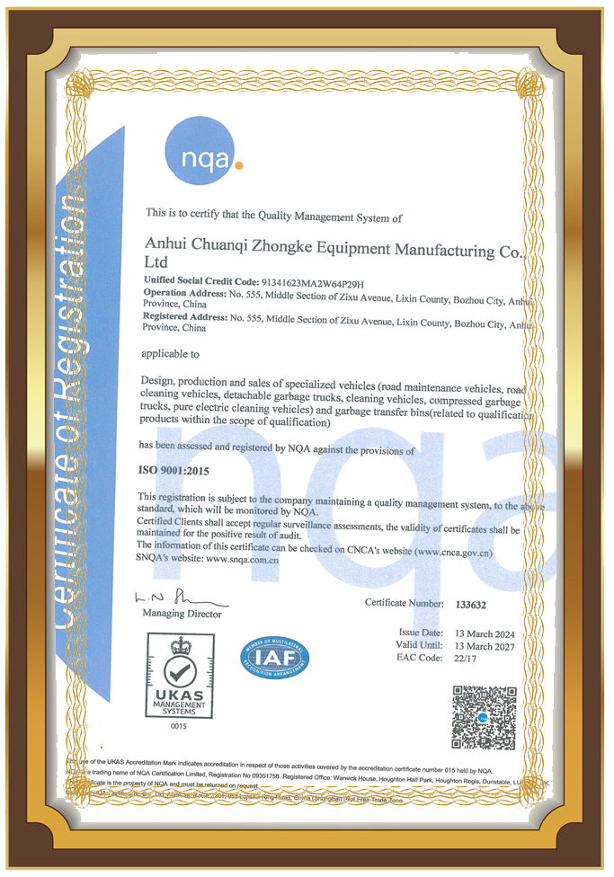 质量管理体系认证证书(英文版)