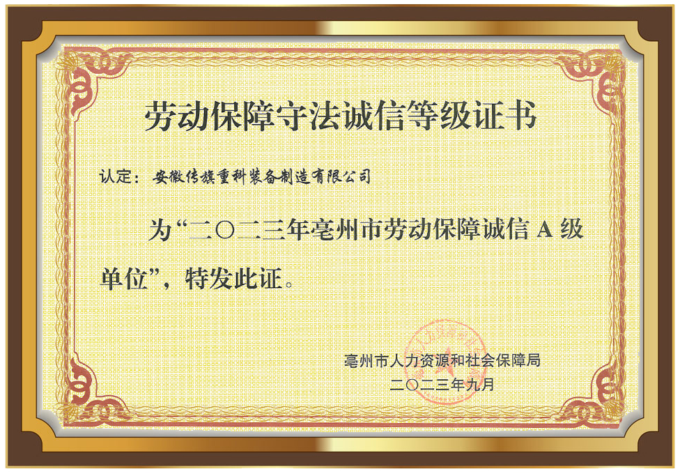 劳动保障守法诚信等级证书